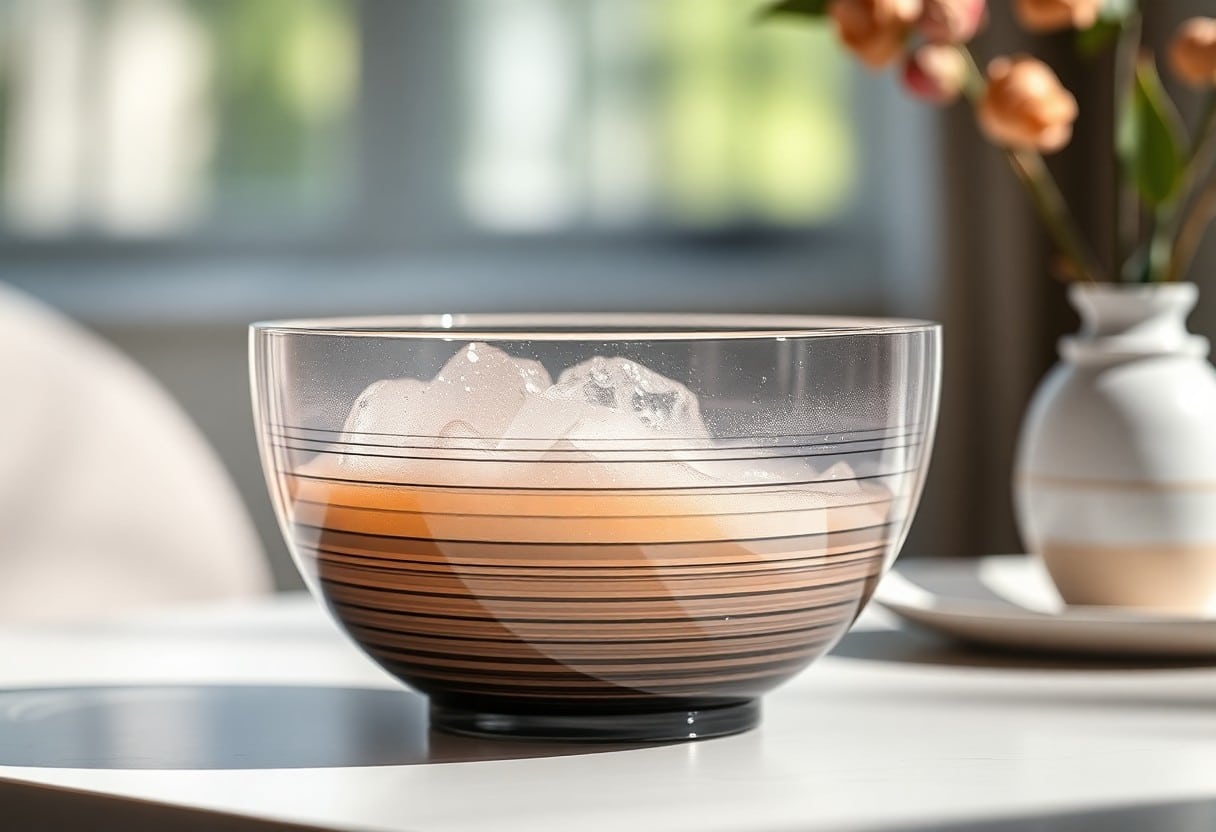 Gegen jede Erwartung, dass Luxus immer ĂŒberladen und kompliziert sein muss, beweist die Champagnerschale Stripe Grau, dass Eleganz und Sophistikation auch in der Einfachheit liegen können.