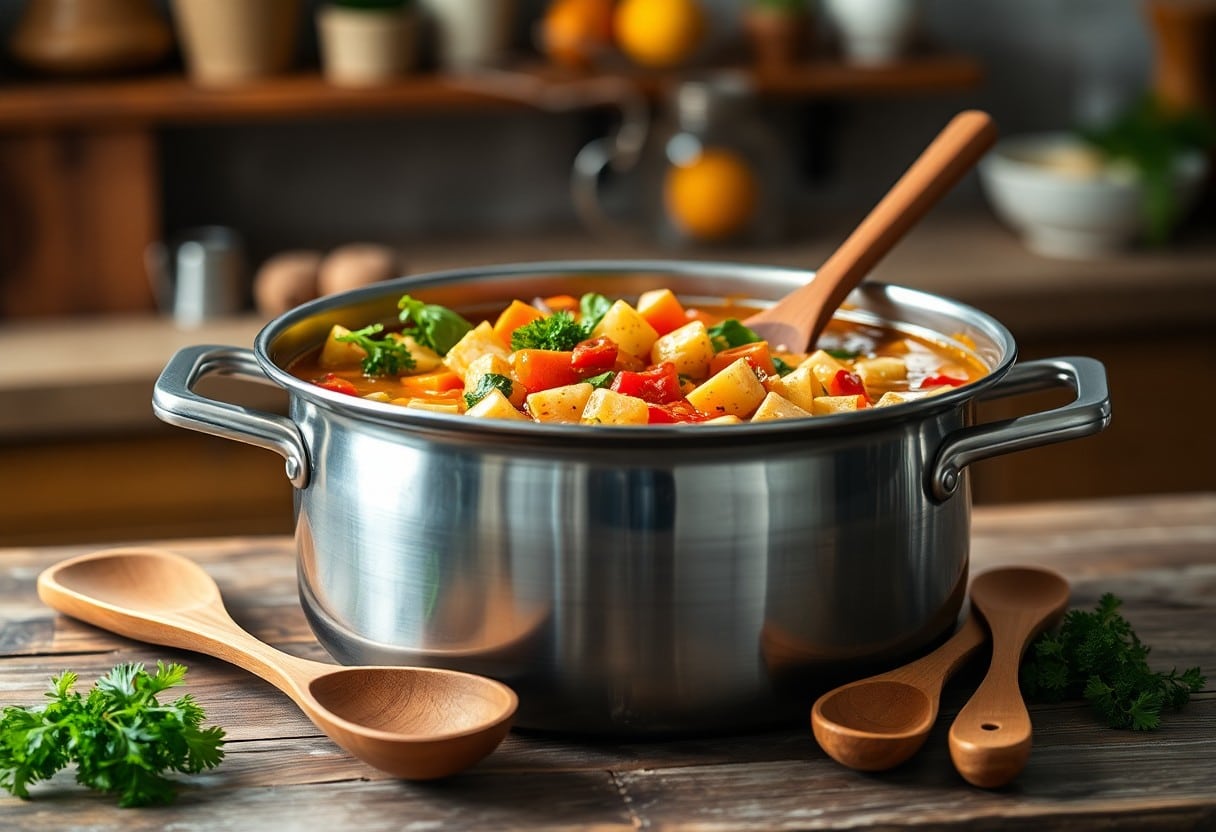 Eintöpfe sind vielseitig und eignen sich perfekt fĂŒr deinen grossen Kochtopf. Du kannst sowohl traditionelle Rezepte wie den klassischen Rindseintopf als auch moderne Variationen wie einen vegetarischen Linseneintopf zubereiten. Die Kombination aus verschiedenen Zutaten sorgt dafĂŒr, dass jeder Eintopf einzigartig und schmackhaft wird.
