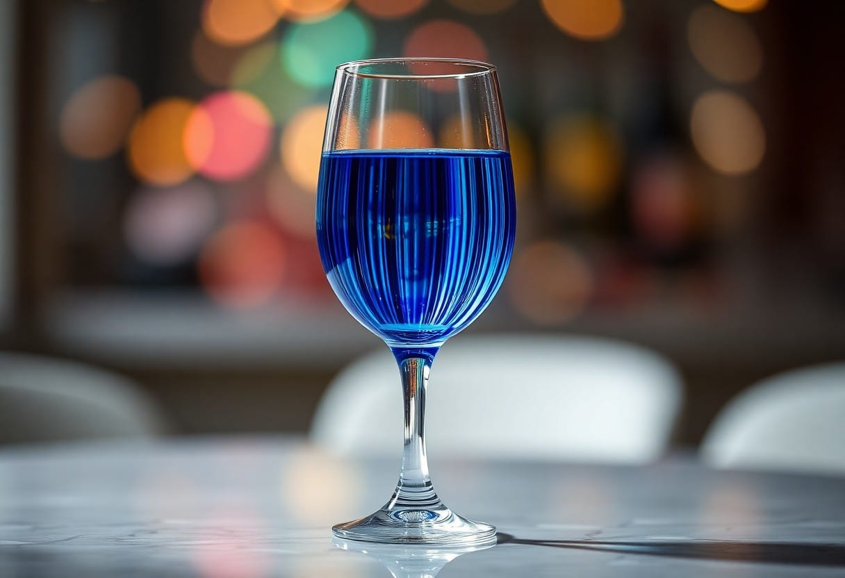 Die Farbe Blau im Weinglas